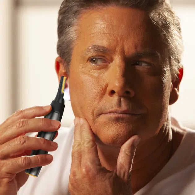 Micro Touch Max es la recortadora premium diseñada para eliminar vello de zonas difíciles como nariz, orejas, patillas, nuca e incluso cejas , en segundos y sin dolor.